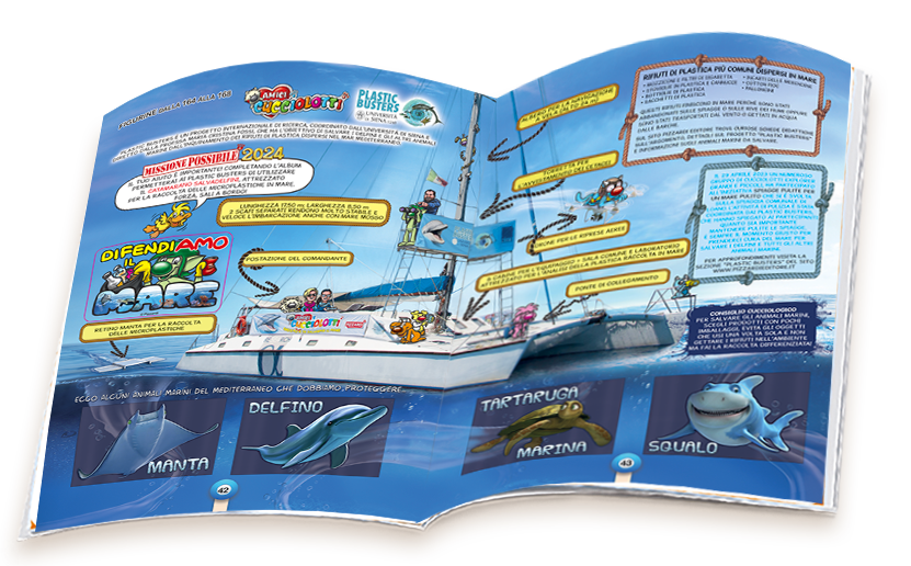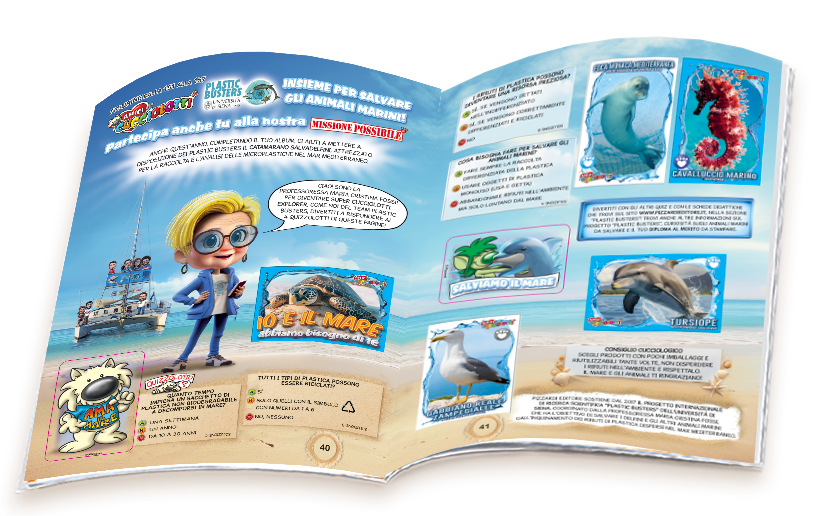 AMICI CUCCIOLOTTI 2018 NEL 2018, GRAZIE ANCHE ALLA PIZZARDI EDITORE, I PLASTIC BUSTERS HANNO PORTATO AVANTI LE ATTIVITÀ DI RACCOLTA DI CAMPIONI DI MICROPLASTICHE NELLE ACQUE DEL SANTUARIO PELAGOS, LA GRANDE AREA MARINA CHE SI ESTENDE TRA L’ITALIA, LA FRANCIA E IL PRINCIPATO DI MONACO. I NOSTRI MARI SONO PURTROPPO PIENI DI PLASTICA: LA MISSIONE POSSIBILE CHE OGNI ANNO VIENE PROMOSSA SULLE PAGINE DELL’ALBUM “AMICI CUCCIOLOTTI” INSIEME AI PLASTIC BUSTERS È SALVARE GLI ANIMALI MARINI E DIFENDERE IL MARE!
